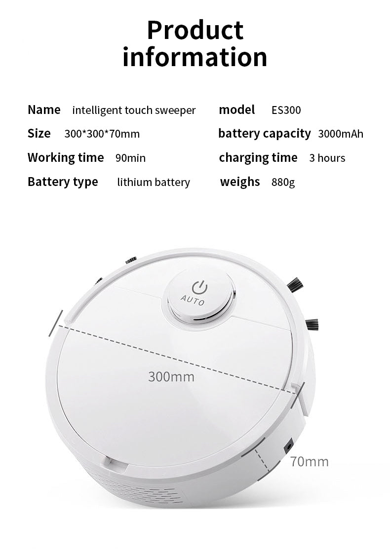 P - ES300 Button Press Automatic Cleaning Robot Cleaner Smart Vacuum Cleaner Rechargeable