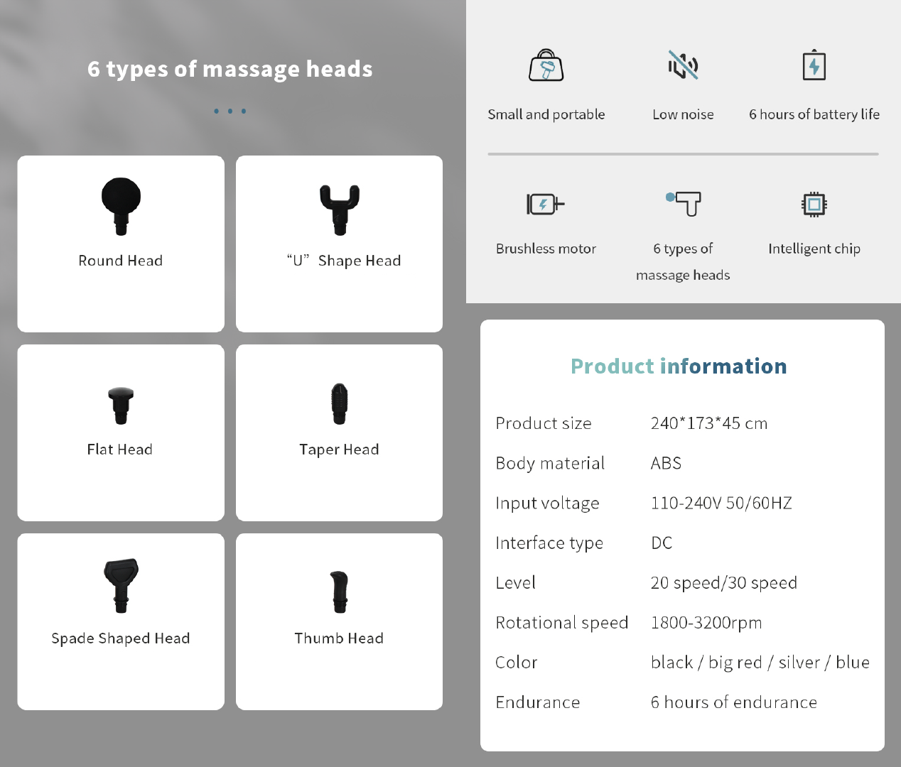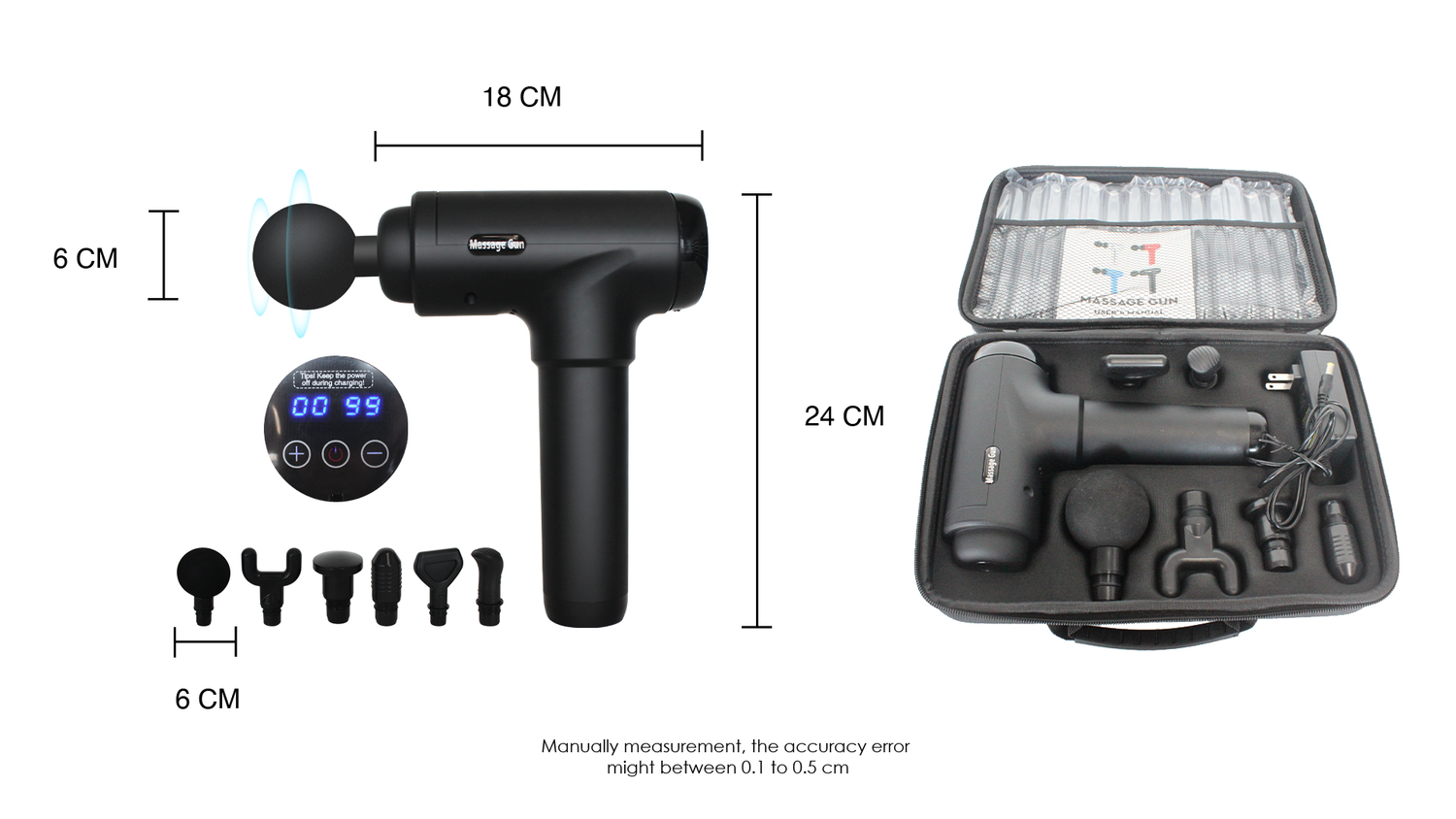 💆♂️ 【6 Massage Heads & 20-30 Speed】 This Massage Gun comes with four different heads to provide targeted treatment for every part of body. Different massage heads and speed levels provide a relaxing massage for better enjoyment. Our percussion massager is equipped with an LCD touch screen showing speed levels.